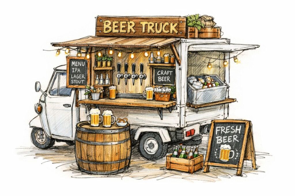 Accanto all’installazione di strutture bar per aperitivi e momenti conviviali, è possibile scegliere proposte più particolari e caratterizzanti, come BEER TRUCK dedicati alla birra artigianale o le iconiche APE che si trasformano in eleganti postazioni mobili di drink e food, capaci di raccontare lo stile, la creatività e la bellezza del nostro Paese.
